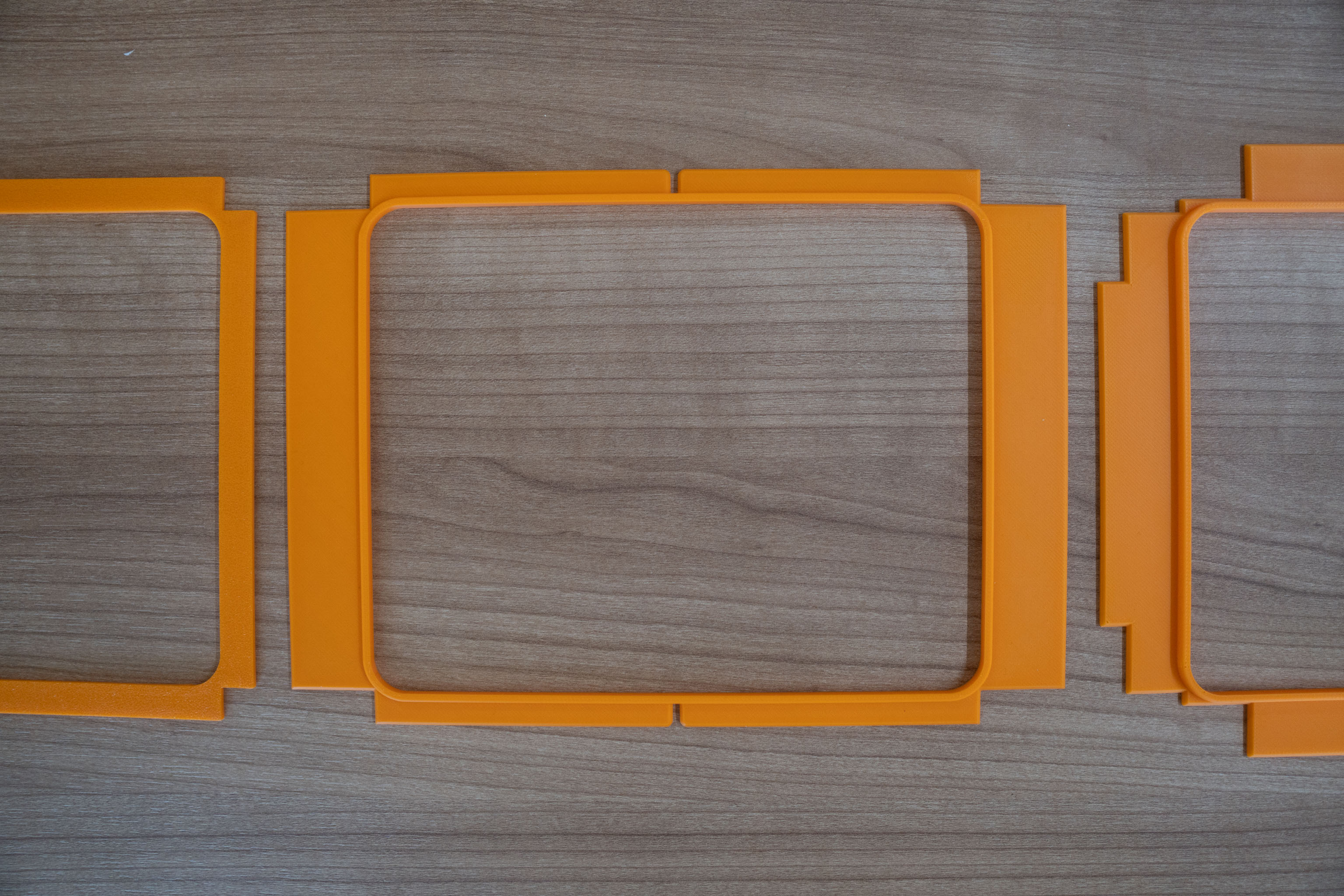 Four iterations of a tool to help me preview the area of a print I can use for a notebook.